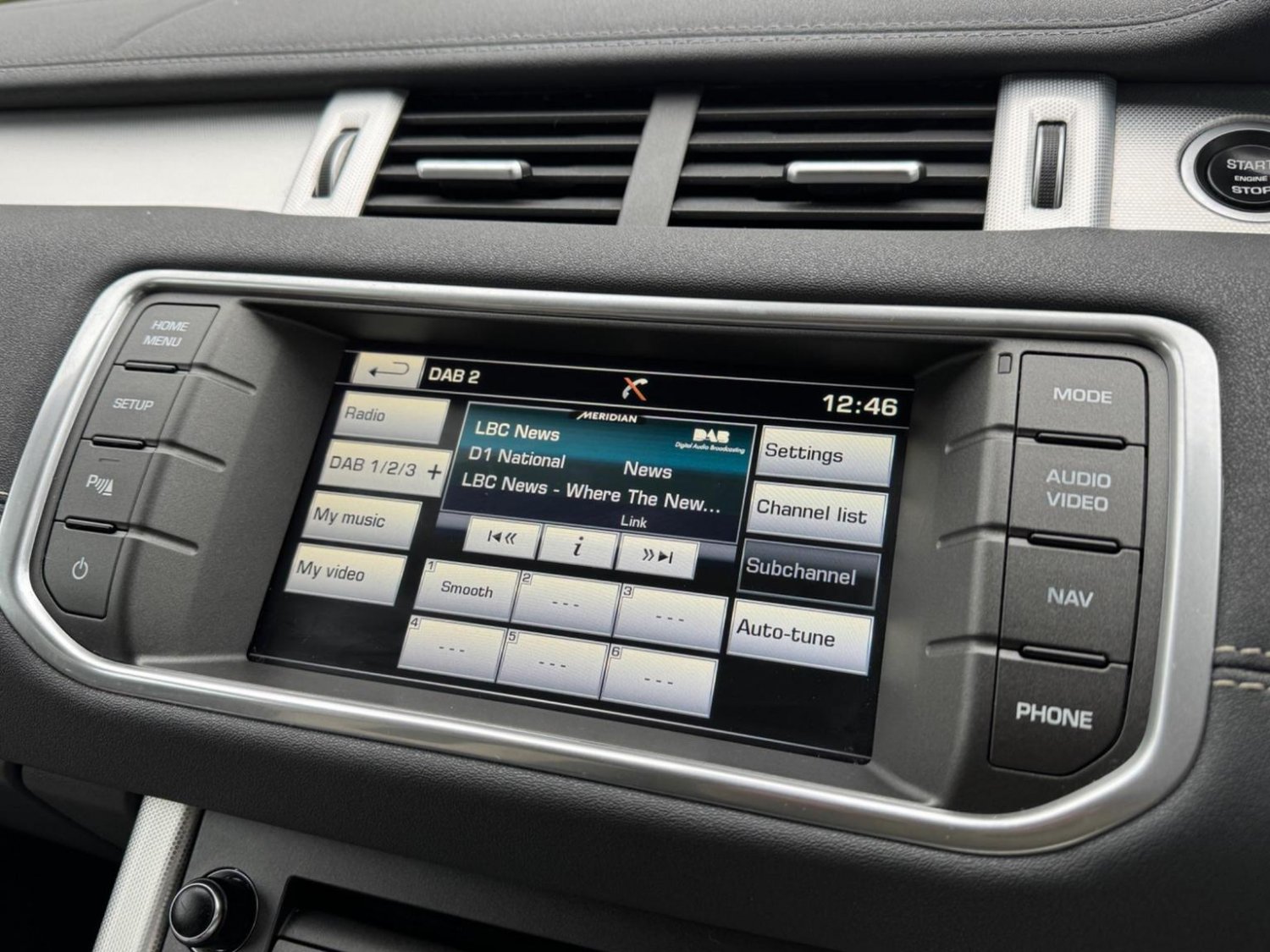20in Alloy Sport Style 6 - Sparkle Silver, 5in TFT Driver Information Centre, 8/6 Way - Electric driver seat adjustment, 8in High Resolution Touch Screen, ABS - Anti Lock Braking System, Adaptive Dynamics, Airbags - Driver Knee, Airbags - Driver and Passenger Side, Airbags - Full Size Driver, Airbags - Full Size Passenger, Aluminium Pedal Finisher Kit, Armrest - Rear Centre with Storage Compartment and 2 Cupholders, Audio Connectivity System, Audio System - 380 Watt Meridian Sound System with Radio and Single Slot CD, Automatic Headlights, Bluetooth Audio Streaming, Bluetooth Telephone Connectivity, Carpet Mat Set - Front and Rear, Centre console - Covered Storage Compartment, Climate Control - Automatic with Air Filtration, Cruise Control, DSC - Dynamic Stability Control, Digital Audio Broadcast Radio - DAB, Door Mirrors - Electrically Adjustable - Heated and Power Folding with Memory Function, EBA - Emergency Brake Assist, EBD - Electronic Brake-Force Distribution, EDC - Engine Drag Torque Control, EPAS - Electronic Power Assisted Steering, EPB - Electronic Park Brake, Front Fog Lights, Global one-shot open/close windows, HDC - Hill Descent Control, HDD Premium Navigation with Touch Screen, HSA - Hill Start Assist, Hazard Warning Lights Under Heavy Braking, Headlight Power Wash, Headlining - Cirrus Morzine, Heated Front Seats, ISOFIX Child Seat Anchor Points, Illuminated tread plates, Illumination - Footwell, Illumination - Glovebox, Illumination - Load Compartment Light, Illumination - White Lighting in door release and over head console downlighter, Interior Mood Lighting, Land Rover - Tyre Repair System, Leather Steering Wheel, Locking Wheel Nuts, Luggage Compartment - Anchor Points, Luggage Cover, Multi-Function Steering Wheel, Parking Aid - Front, Parking Aid - Rear, Parking Aid - Rear View Camera, Proximity Sensing and Touch Detection For Overhead Map Lights, Push Button Start, RSC - Roll Stability Control, Rain Sensing Windscreen Wipers, Range Rover Smart Key Controls - Remote lock-Unlock-Double Lock-Lights on Tailgate Open, Rear spoiler, Satin brushed aluminium centre console finisher, Seats - 3 Seat Bench in Rear, Seats - 60/40 Split, Seats - Rear Centre Head Restraint, Sun Visors - Illuminated Vanity Mirrors, TCS - Traction Control System, TSA - Trailer Stability Assist, Terrain Response, Textured aluminium centre console finisher and textured aluminium IP finisher, Torque Vectoring, Waist finisher - High Gloss Black, Windows - Heated Rear Windscreen, Windscreen - Heated, Windscreen Washer Jets - Heated, Xenon Headlamps with LED Signature